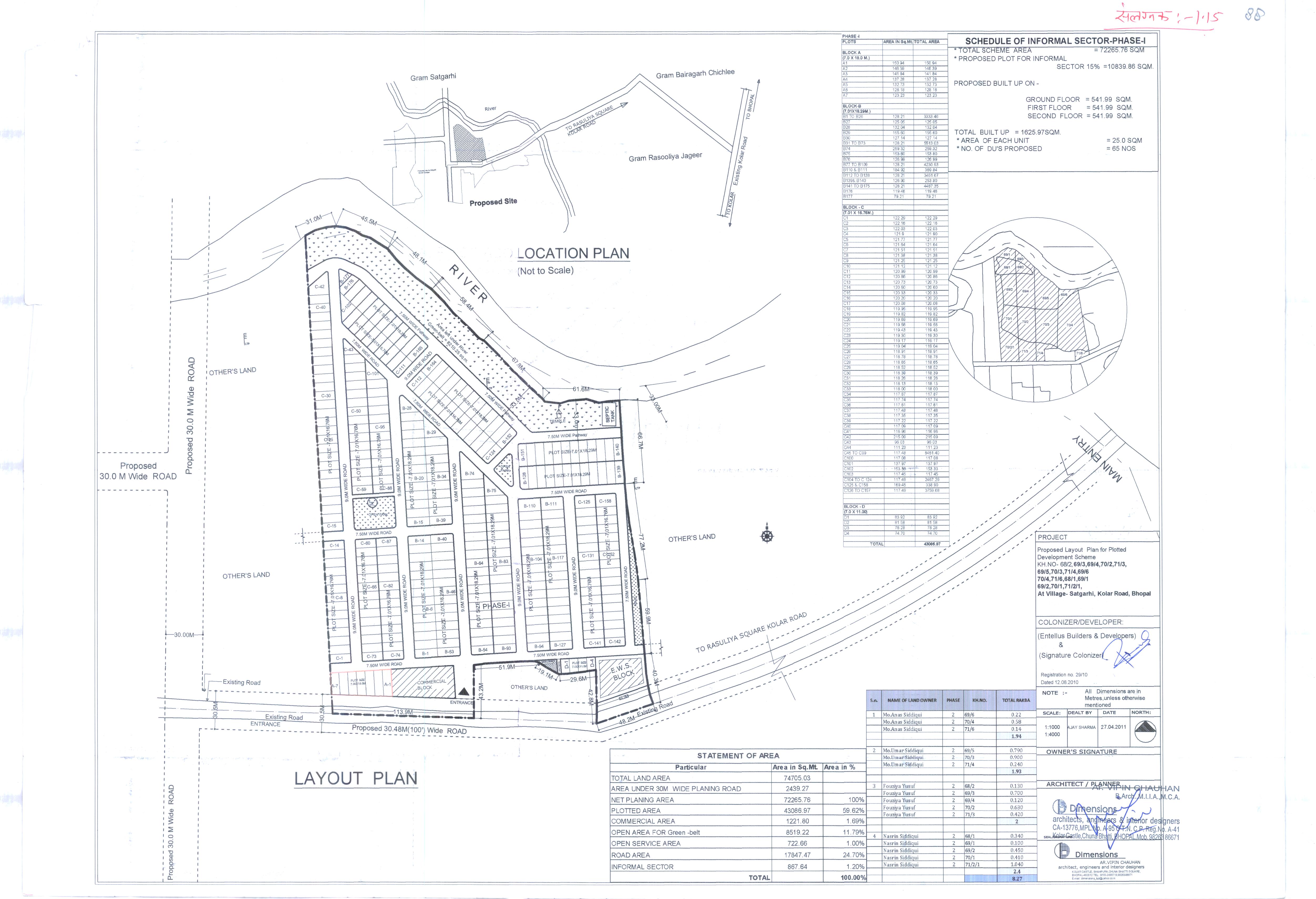 1.11 प्रश्नाधीन भूमि का स्थल रेखांक/साईट प्लान नियम 16 (4) (क) से (ठ) के अनुसार (10 हेक्टेयर तक 1:1000 व उस से बड़े स्थल के लिए 1:2000 के मान से) ।