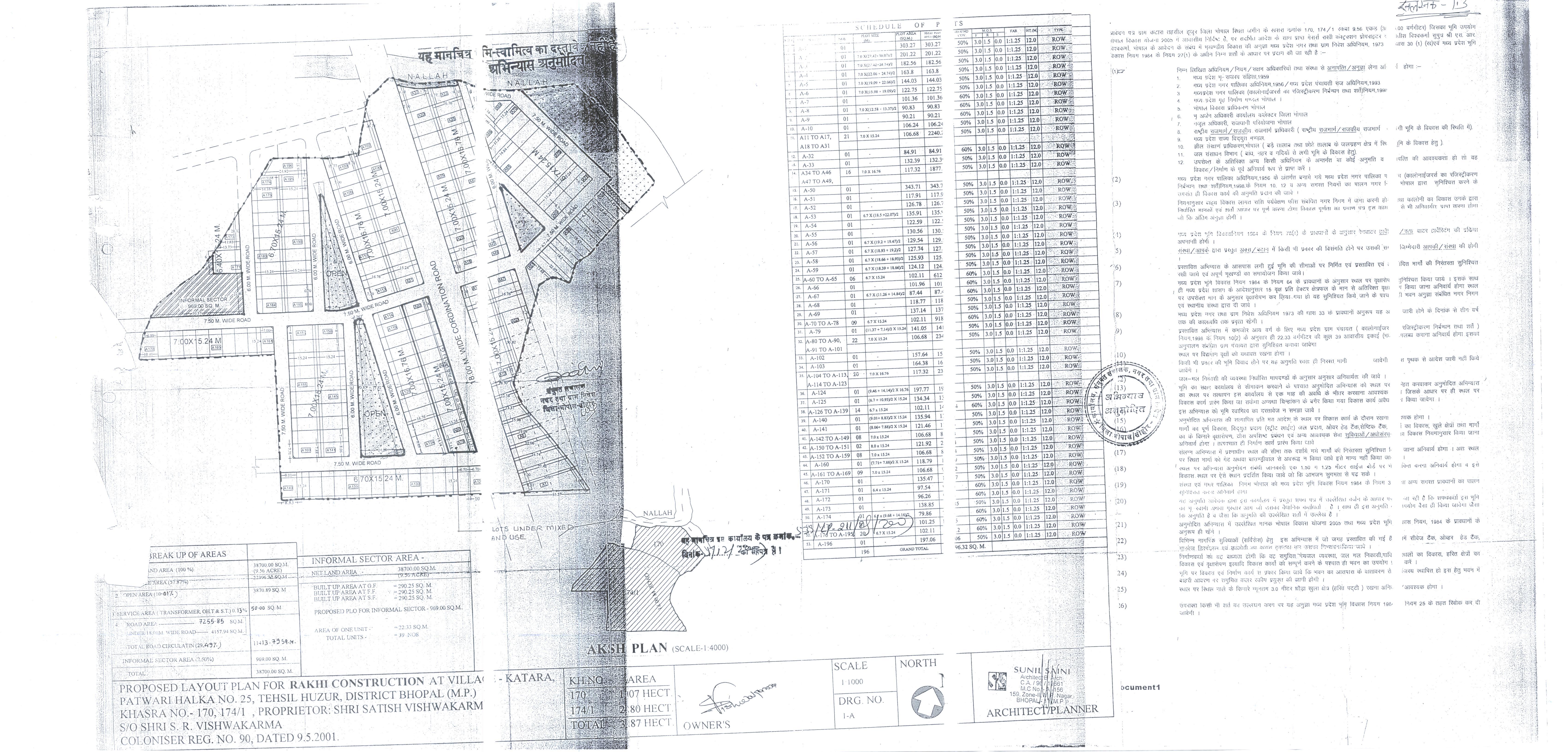 1.7 नवीन अभिन्यास की चार प्रतिया (जो कि अंतिम अभिन्यास होगा, यदि संषोधित उसी स्केल में अनुज्ञात किया गया हो जैसा कि पूर्व में अनुमोदित किया गया था) सक्षम वास्तुविद/संरचना इंजीनियर/इंजीनियर/पर्यवेक्षक/ नगर योजनाकार द्वारा अभिप्रमाणित।